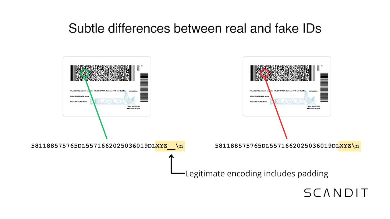 For example, U.S. driver’s licenses follow the published specification for PDF417 barcodes, but individual states encode data differently. The field order, padding, delimiters, and optional attributes vary widely, and fake IDs often exploit these inconsistencies, knowing that most scanners look for “good enough” encoding.