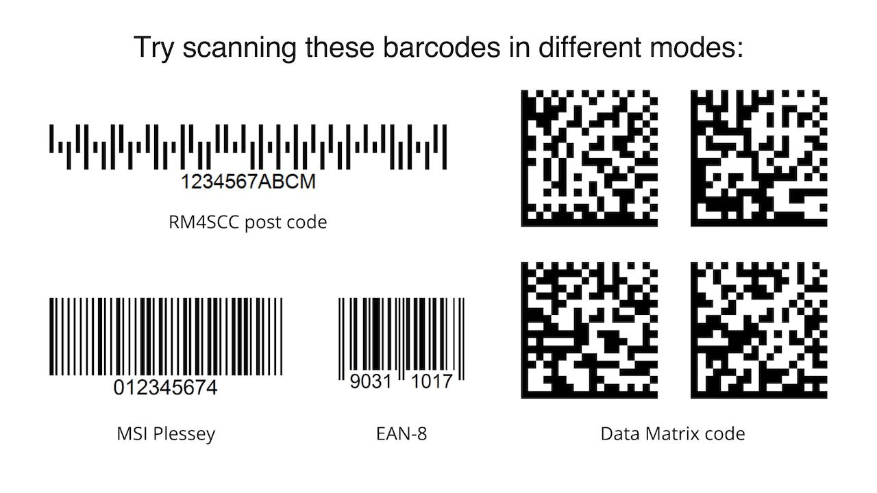 テストをしながらすぐに試せるよう、画面上にサンプルコードをご用意しています。ただし、より詳細な評価には印刷されたコードをご利用ください。画面サイズや解像度によって、スキャン性能に影響する場合があります。