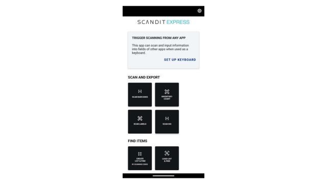 - これで Scandit Express のホーム画面が表示されます。画面は以下のようなイメージです:
