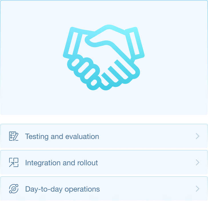 We partner with you all the way from evaluation through to day–to-day operations – with trials, solution design, integration, and SLA-driven support plans.